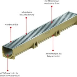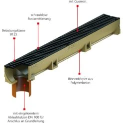ACO Self Euroline Entwässerungsrinne Mit Stutzen Und Gussrost