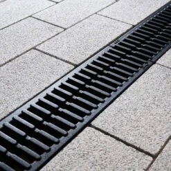 Durch den eingeformten Stutzen DN 100 kann die Rinne ganz einfach an die Grundleitung angeschlossen werden. Das Rinnenelement wird allen Anforderungen gerecht, um sämtliche Flächen rund ums Haus zu entwässern. Ein Geruchsverschluss mit integriertem Laubfang ist nachträglich einsetzbar.
