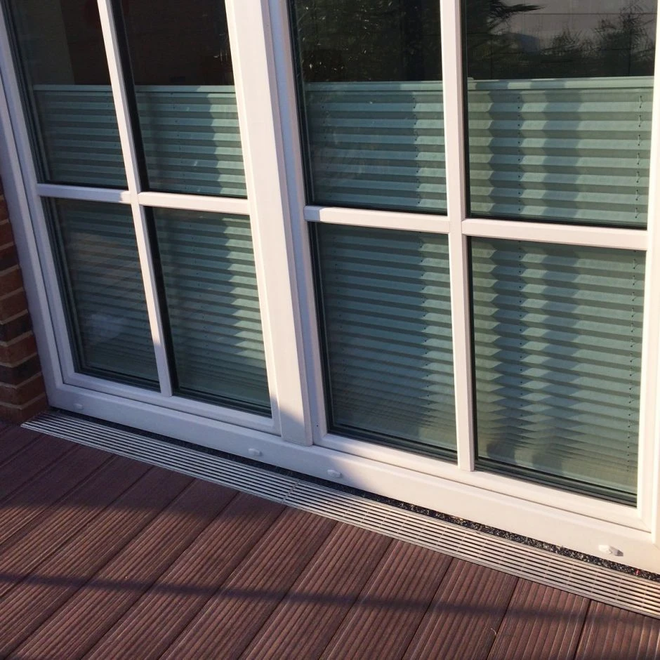Doch auch der Innenraum wird vor Durchfeuchtung geschĂŒtzt, da das Wasser sich nicht direkt am Ăbergang ansammeln kann. Daher sollte die ACO Highline Fassadenrinne ĂŒber die komplette Breite und nicht weiter als 5 cm von einer TĂŒrschwelle entfernt verlegt werden.