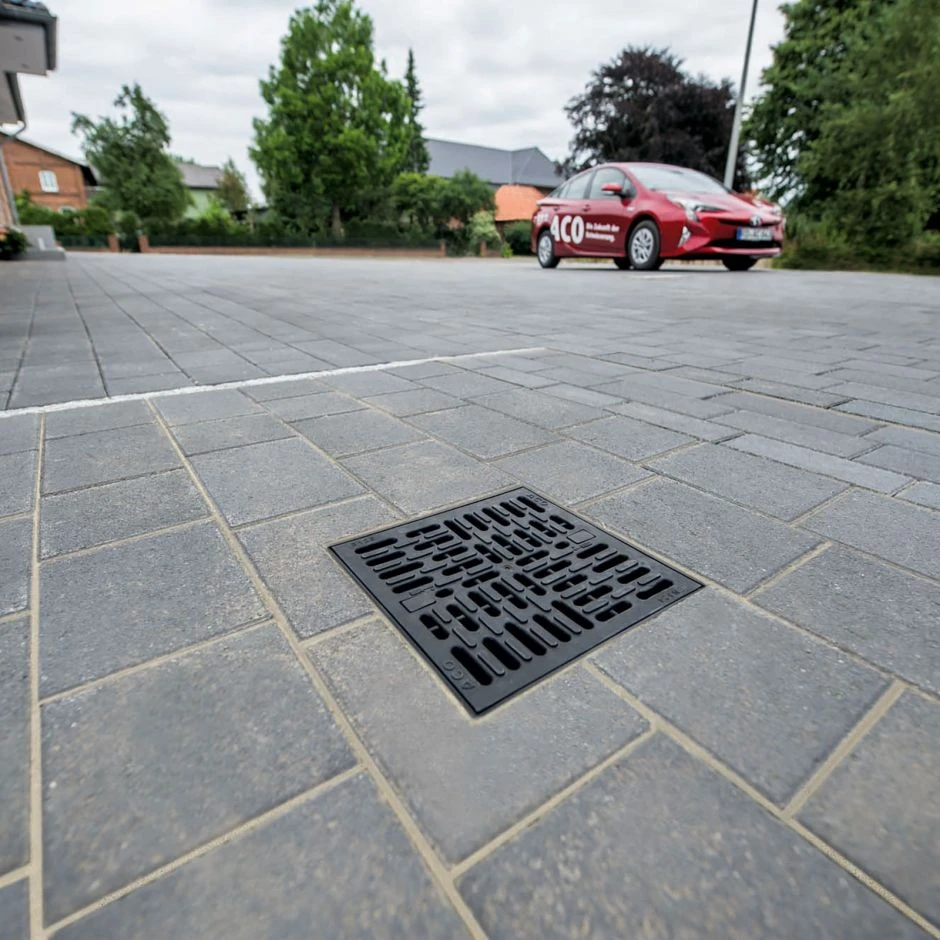 Zum anderen könnnen Sie den Rost um 90 Grad drehen, um die Optik Ihres Ablaufs an das Pflasterfugenbild anzupassen.