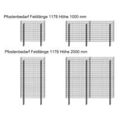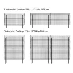 Die genauen Maße mit unterschiedlichen Höhen und die Maschenweite können Sie der folgenden Tabelle entnehmen.