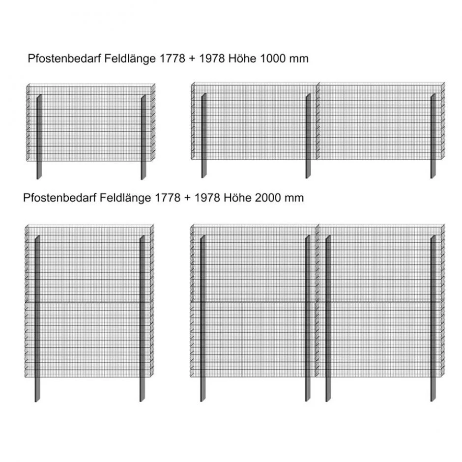 Die mitgelieferten Pfosten lassen sich sowohl 40 cm tief einbetonieren oder mit FuĂźplatte oder Montagewinkel Aufschrauben.