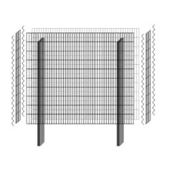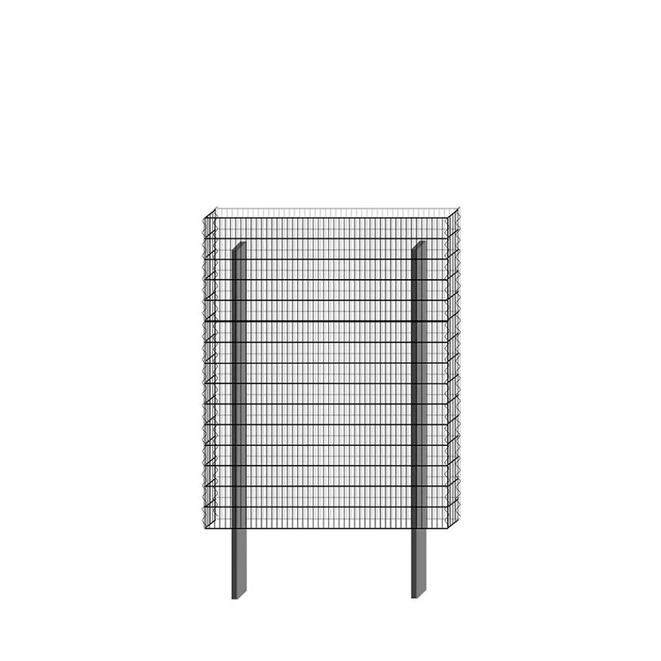 Der Grundbausatz besteht aus einem seitlich abgeschlossenen Gabionenkorb mit zwei einbetonierbaren oder aufschraubbaren Pfosten und allem nötigen Befestigungsmaterial.