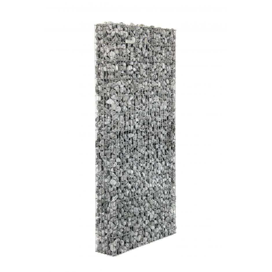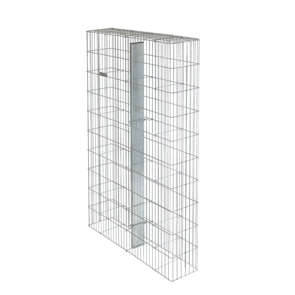 Das Komplettset besteht aus dem fertig montierten Gabionenkorb und einem Pfosten mit höhenverstellbarer Aufhängung.