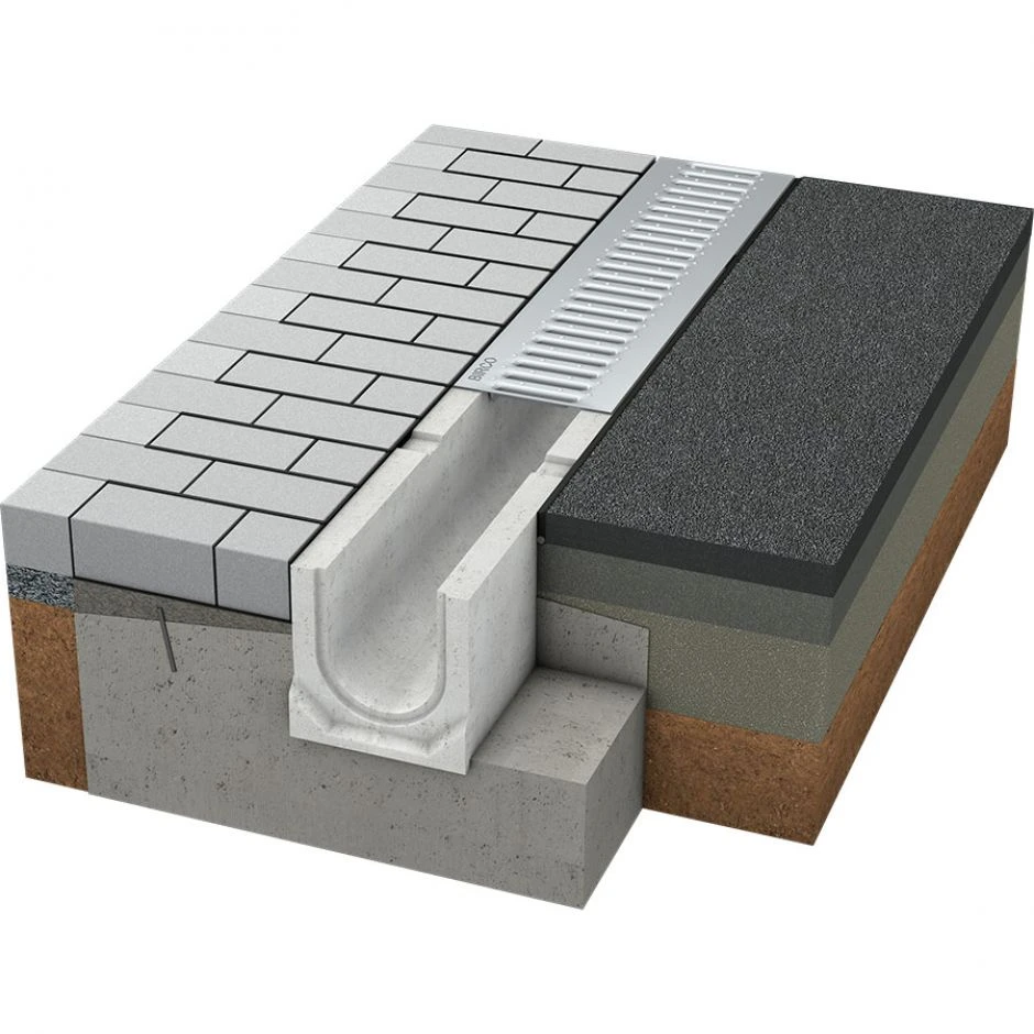 Darüber hinaus ist die Entwässerungsrinne BIRCOplus ohne Gefälle die praktische Ergänzung für die BIRCOplus Entwässerungsrinne mit Gefälle (siehe Tabelle für passende Bauhöhen). Die BIRCOplus Entwässerungsrinne besteht aus stabilem C 40/50 Beton, der eine hohe Druckfestigkeit besitzt, aber dennoch leicht im Gewicht ist und für eine einfache Handhabung sorgt.