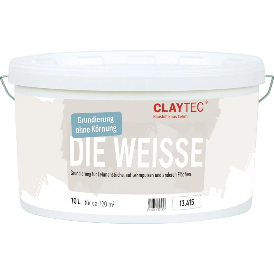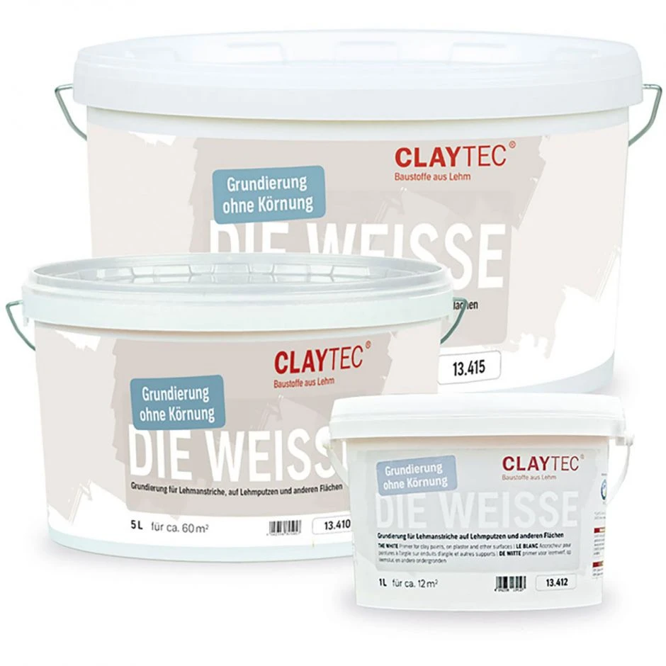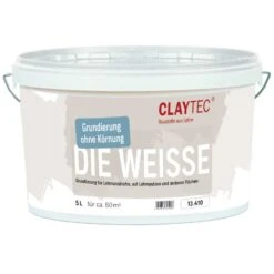 FĂŒr die Vorbehandlung der CLAYTEC Lehmputzen und aller CLAYFIX Lehm direkt Putzen können Sie die Grundierung DIE WEISSE ohne Körnung auftragen.