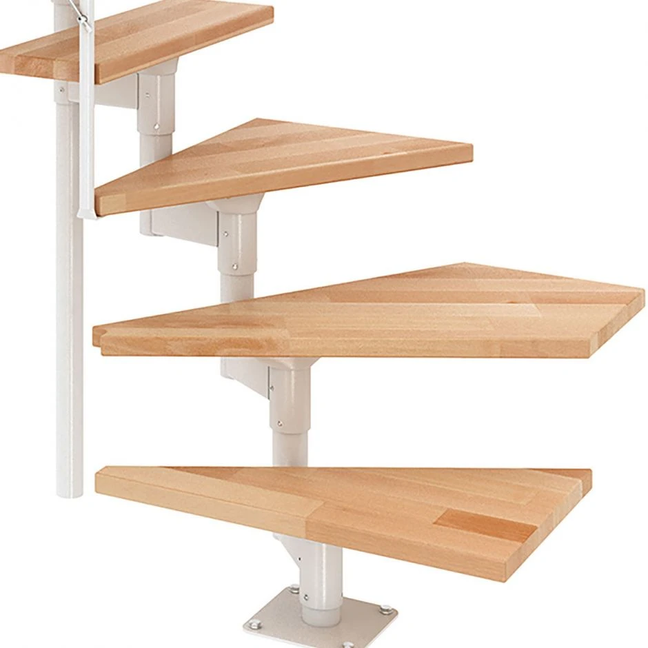Diese Treppe eignet sich besonders bei sehr geringem Platz. Dank formschön geschwungener Stufen und individuell anpassbarem Treppenverlauf von gerade bis gewendelt (maximal 1/4-gewendelt) passt sie selbst in kleinste Räume.