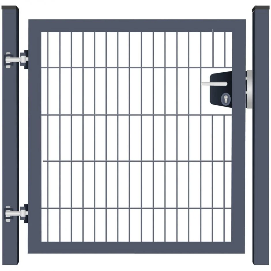 Das einflügelige Flügeltor VARIO trend Anthrazit in Zink dient als vielseitiges Tor für die Doppelstabmatten-Zäune MAX oder MORITZ sowie für die Gabionenzäune.