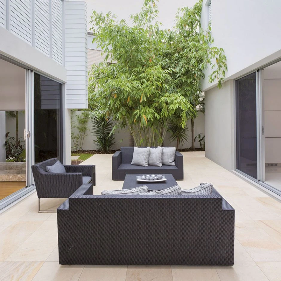 - Terrassenplatte mit hellen Sandtönen und zartem Glimmer