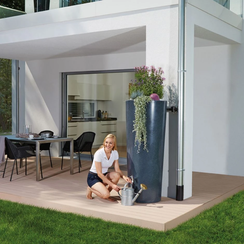Ein 2 in 1 Stone Regenspeicher mit Pflanzschale von GRAF ist praktisch und dekorativ. Mit der Pflanzschale kann die Regentonne einfach bepflanzt werden. Der Tank lÀsst sich in jedem Garten problemlos aufstellen und ist in verschiedenen Farben erhÀltlich. Mit einem entsprechenden Fallrohrfilter können Sie einfach das Regenwasser in den Tank einleiten und spÀter (beispielsweise) zur GartenbewÀsserung benutzt. Sie verschönern mit einem GRAF Stone Regenwassertank nicht nur ihren Garten, sondern helfen auch aktiv dabei mit unsere Umwelt zu schonen.