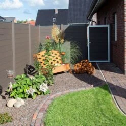 Die Zaunelemente aus BPC ĂŒberzeugen durch Pflegeleichtigkeit sowie StrapazierfĂ€higkeit und haben beidseitig die gleiche Optik. Das leicht zu bearbeitende Material lĂ€sst sich mit ĂŒblichen Holzbearbeitungswerkzeugen auf jedes gewĂŒnschte MaĂ kĂŒrzen. Ein Zaunelement hat die GröĂe von ca. 180×180 cm und eine FĂŒllung ca. 180x15x1,9 cm. Das Set besteht aus 12 FĂŒllungen inkl. Abschlussprofil und DistanzstĂŒck-Set. Die Pfosten mĂŒssen separat erworben werden.