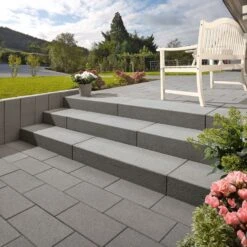Die KANN Blockstufe Vios mit ihrer feingestrahlten OberflĂ€che mit Natursteinkörnung und dezent schimmernden Glimmerpartikeln begeistert auf den ersten Blick. Mit ihrer unaufdringlichen Optik bringen die KANN Vios Blockstufen Ruhe und Harmonie in die Gestaltung Ihrer AuĂenanlagen. Die Vios Blockstufen haben eine gefaste TrittflĂ€che (Fase 6×6 mm) und gefasten StoĂflĂ€chenkanten (Fase 3×3 mm). Die TrittflĂ€che, StöĂe und Köpfe der Blockstufen haben eine fein kugelgestrahlte OberflĂ€che. Sie sind Rutschhemmend, Frost- und TausalzbestĂ€ndig. Sie sind die perfekte ErgĂ€nzung zu Vios Terrassenplatten und Palisaden.