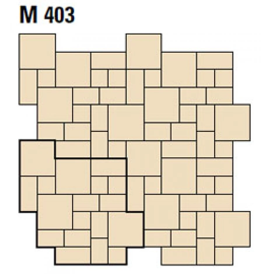 Im wilden Verband beträgt die Verlegefläche 0,81 m² pro Lage (Verlegemuster M 403, siehe Datenblatt) und beinhaltet folgende Steinformate: