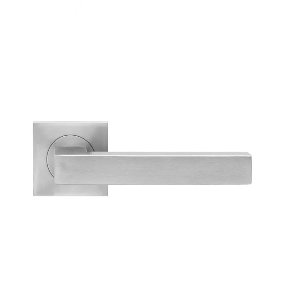 Die Türgriff-Garnitur Seattle ER46Q Edelstahl matt von Karcher Design überzeugt mit ihrem puristischen und kubischen Design. Neben dem eckigen Griff wird das geradlinige Design von der quadratischen Rosette unterstützt.