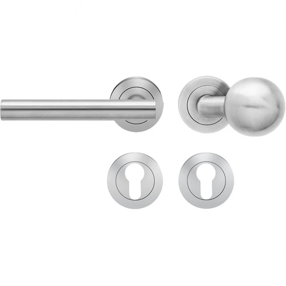 Die attraktive Wechselgarnitur Manhattan ER21 von Karcher Design besteht aus einem runden Türknopf für außen und einem Türdrücker für innen.