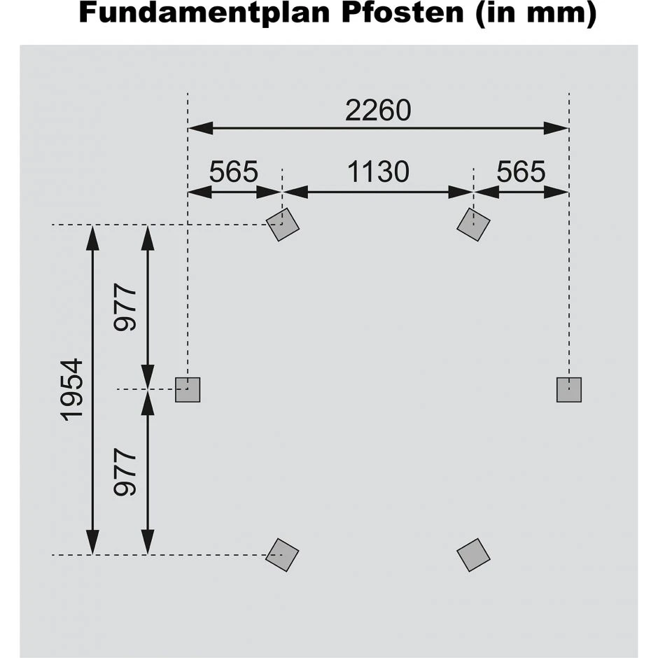 | Größe | Benötigte Pfostenanker | Benötigte Dacheindeckung |