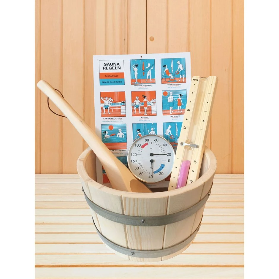 Mit diesem Zubehörset ist Ihre Sauna komplett ausgestattet. Die liebevoll gestalteten Accessoires können Sie auch wunderbar verschenken und somit lieben Menschen eine Freude machen.