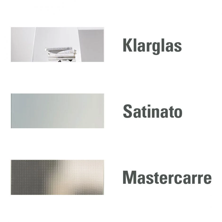 | Verglasung | Klarglas (ESG), Satinato (ESG), Mastercarré (ESG) |