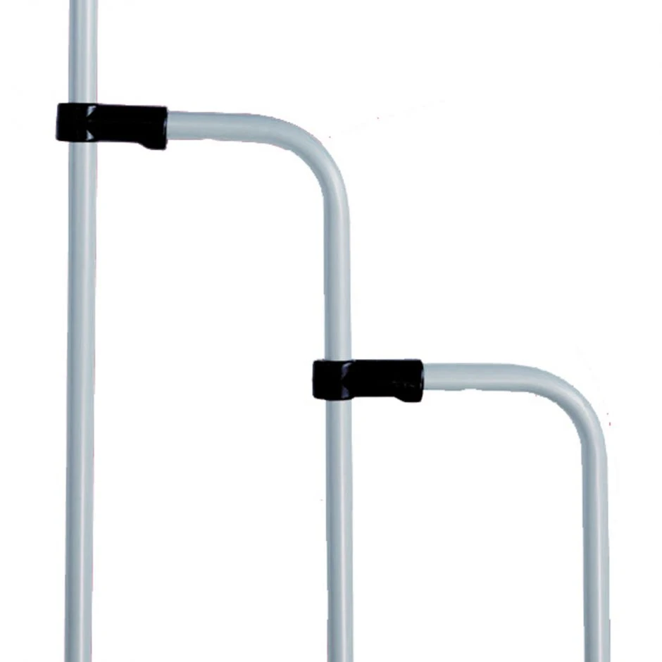 Die Stufen mit einer Breite von 60 cm und dem pulverbeschichtetem Stahl Handlauf ermöglichen einen sicheren Aufstieg. Die Steigungshöhe kann von 17,5-22,8 cm variabel eingestellt werden.