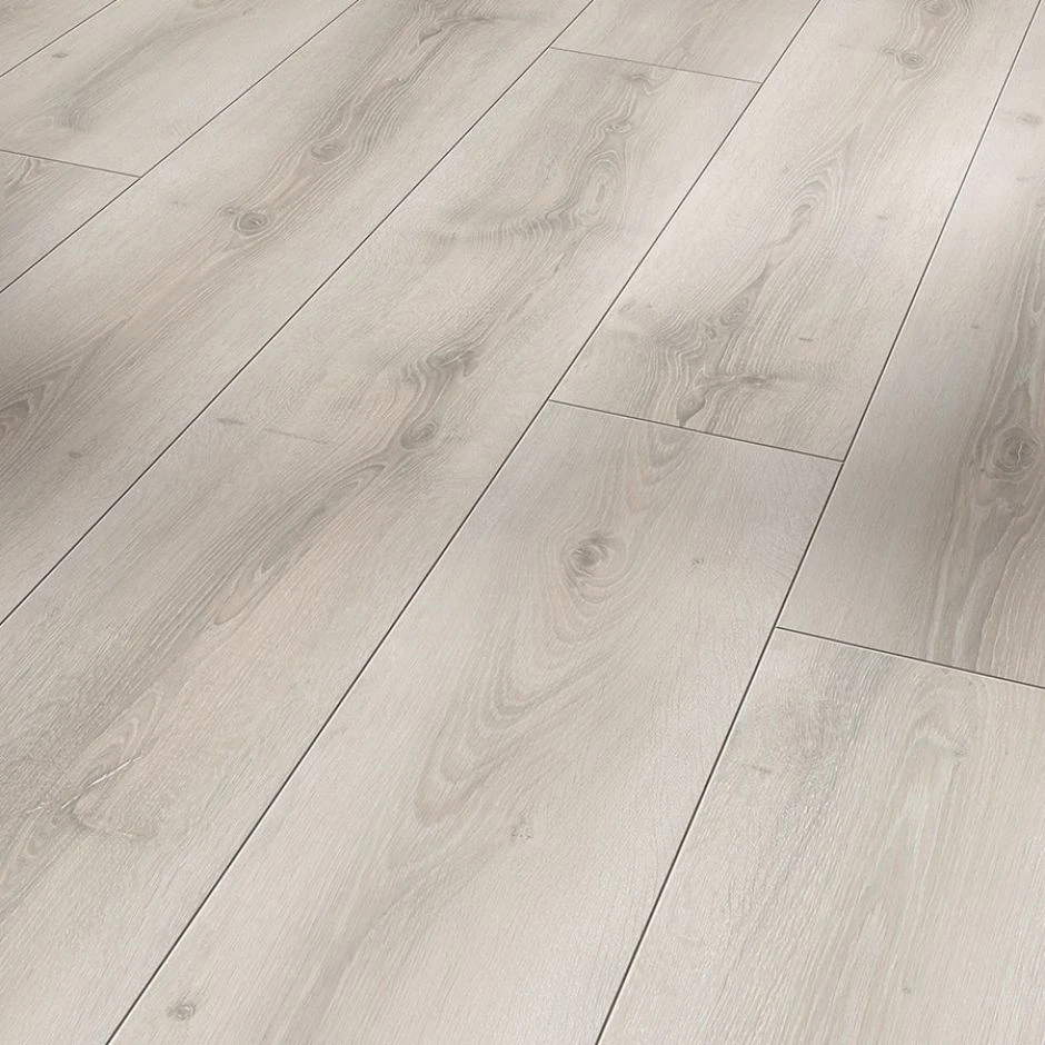 Das Parador Laminat Trendtime-6 Eiche-Askada-weiß-gekälkt-4V besitzt durch seine großformatigen Schlossdielen eine besonders edle und luxuriöse Optik. Durch die V-Fasen an den Seiten- und Stirnenden werden die Maße und Eichendekore des Laminats hervorgehoben und kommen so in großen Räumen sehr gut zur Geltung. Dank des technisch verbesserten Fasenlacks ist der Boden für bis zu 48 Stunden vor stehendem Wasser geschützt.