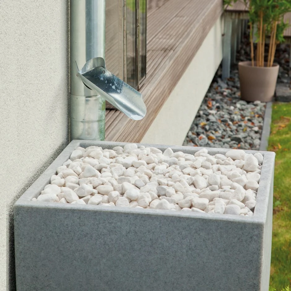Der neue oberirdische Regenwasserspeicher Modena von Rewatec ist in drei verschiedenen Farben verfügbar (granit, black granit und rubinrot). Der PE-Speicher ist im oberen Bereich geöffnet und kann individuell mit Kies befüllt werden. Die Einlegeplatte ist mit einem Filterkorb versehen, sodass keinerlei Schmutzpartikel, wie beispielsweise Blätter in den Tank gelangen können. Durch den Kies, sowie den vorhandenen Filterkorb besitzt der Tank eine doppelte Filterung. So speichern Sie klares und vor allem sauberes Wasser in Ihrem Regenspeicher. Auch wenn Sie keine Regenklappe am Fallrohr besitzen, kann der Modena Tank problemlos über einen Fallrohrfilter (seitlich) an der Dachrinne angeschlossen werden. Hierzu muss lediglich eine Bohrung vorgenommen werden. Nutzen Sie jetzt die vielen Vorteile des Rewatec Modena Wasserspeicher.