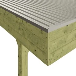 Bei diesem Carport wird imprägniertes Nadelholz verwendet. Nach einer vom Hersteller durchgeführten Salzbehandlung, welche das Holz resistenter gegen Pilze und Insekten macht, erhält es einen grünlichen Farbton. Bitte beachten Sie: Ca. 2-3 Schönwettermonate nach dem Aufbau muss das Holz nachbehandelt werden.