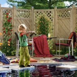 - TraumGarten Sichtschutzzaun GADA Holz mit Diagonalrankgitter