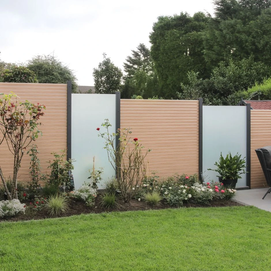 Das TraumGarten Sichtschutzfeld SYSTEM RHOMBUS aus beschichteten Aluminiumprofilen in Rhombusform ist dem Holzklassiker nachempfunden. Die ausgeschäumten Aluminiumprofile weisen eine höhere Stabilität als Echtholzprofile auf. Außerdem verziehen sich die Aluminiumprofile durch Witterungseinflüsse kaum. Durch 10 mm große Abstände zwischen den Rhombusprofilen sind die Sichtschutzfelder nicht zu 100% Blickdicht. Durch die Rhombusform der Profile wird der Blick und das Licht in unterschiedliche Richtungen geführt. Der Durchblick wird auf der einen Seite nach unten und auf der anderen Seite nach oben geführt. Bitte beachten Sie dies bei der Montage der Zaunfelder!