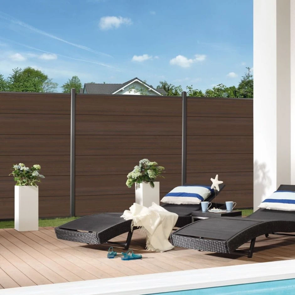 In der Farbe Braun gestalten Sie mit den Zaunelementen einen stilvollen und holzÀhnlichen Sichtschutz, der warme Akzente in die Garten- und Terrassengestaltung setzt. Die Abschlussleisten runden im Anthrazitfarbton den Sichtschutz ideal ab.