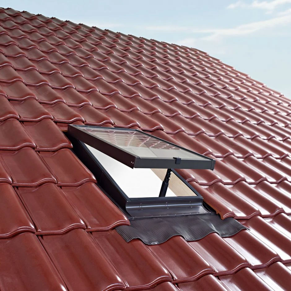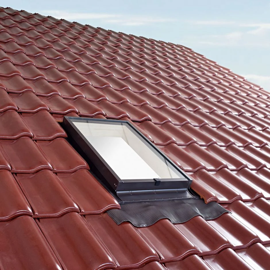 Der mitgelieferte Universal-Eindeckrahmen ist fĂŒr alle Dacheindeckungen geeignet.