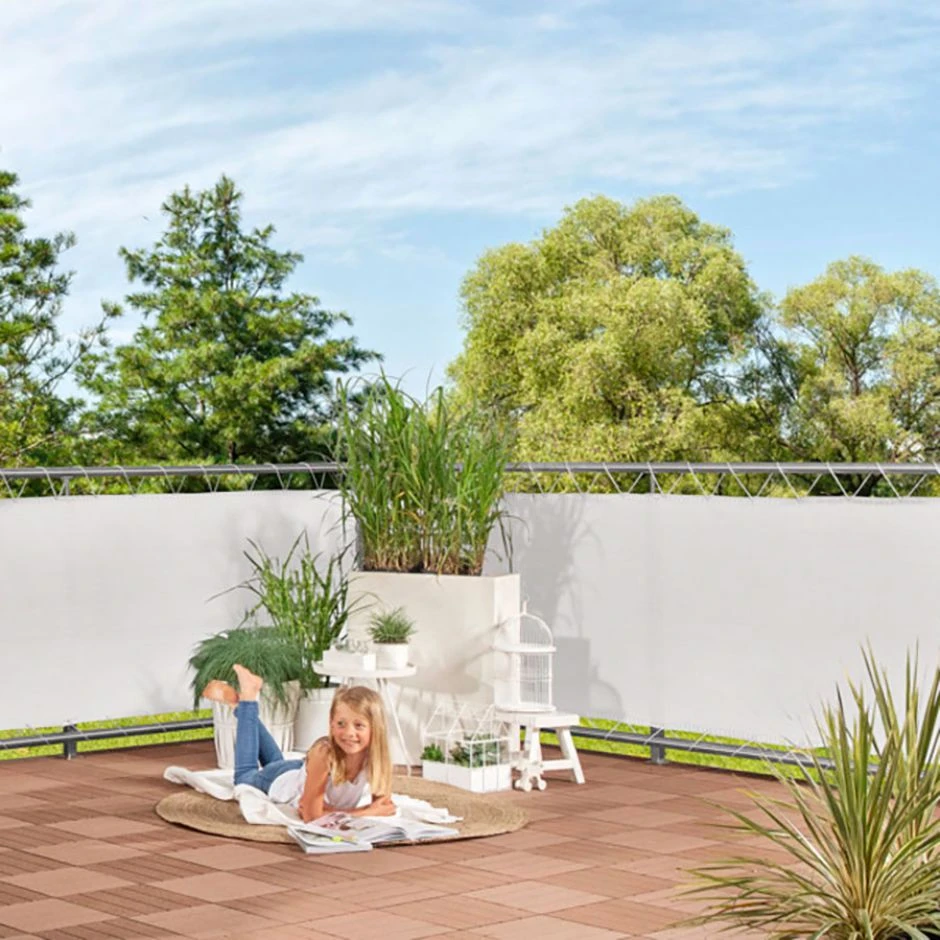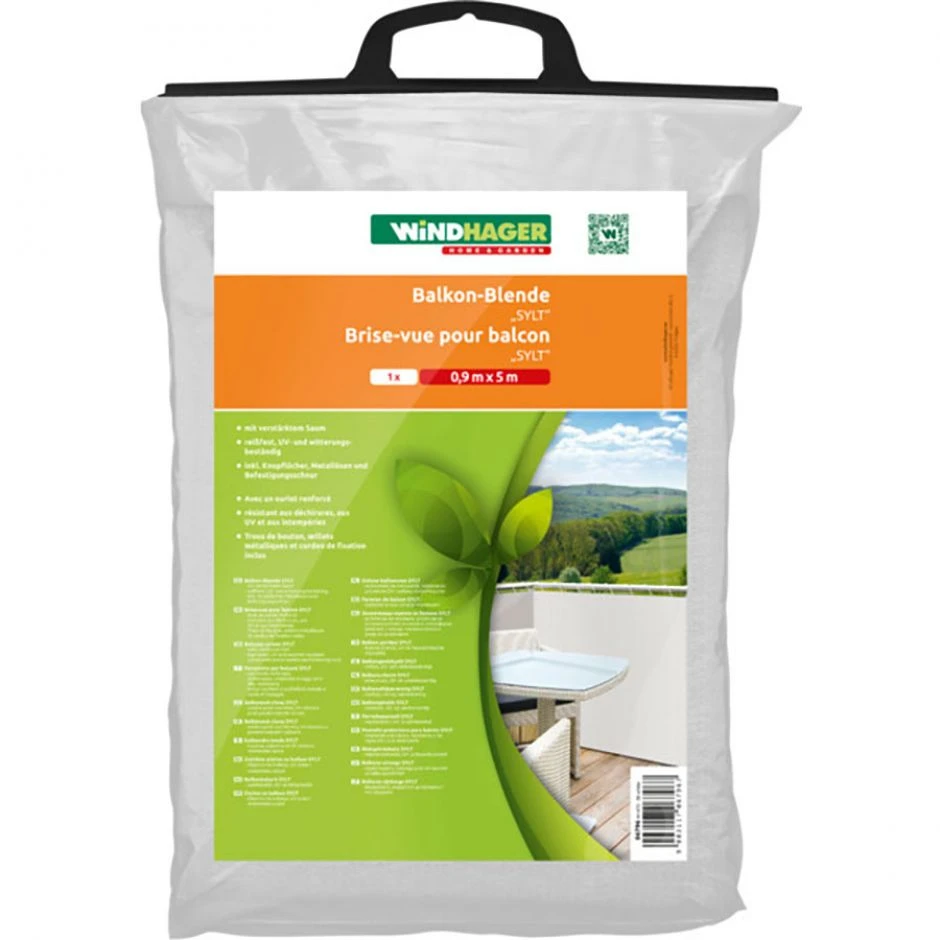 Die Windhager Balkonblende SYLT ist ein hochwertiger Sichtschutz aus robustem HDPE-Gewebe mit verstärktem Saum und Knopflöchern für eine schnelle und unkomplizierte Montage direkt am Geländer.