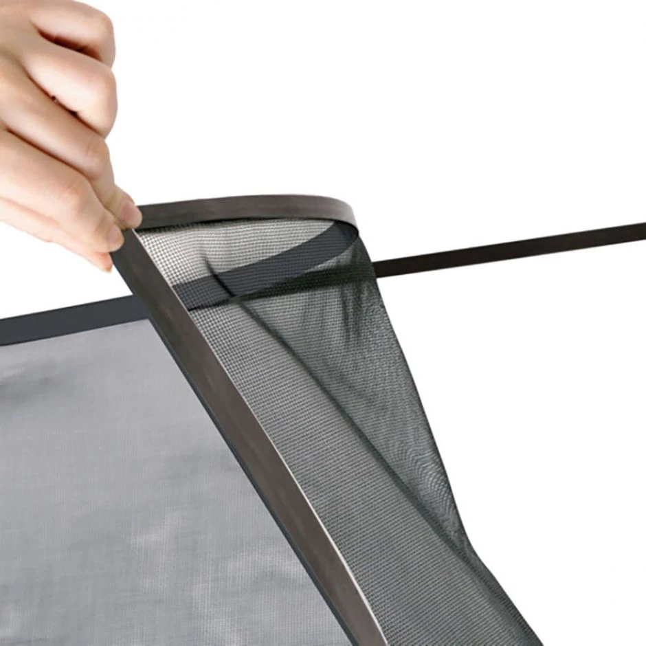 Die Montage erfolgt bohrfrei via selbstklebenden Magnetstreifen, wodurch sich der Insektenschutz auch für Mietwohnungen hervorragend eignet. Die flache Einbautiefe von 9 mm gewährleistet eine Anbringung auch hinter einer Jalousie oder einem Rollladen.