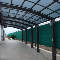Der XIMAX Carport Portoforte Tandem Edelstahl-Optik ist ein besonders langer Doppelcarport, unter dessen in Leichtbauweise konstruierten Rahmen zwei Wagen hintereinander passen. Sein Rahmen besteht komplett aus hochwertig eloxiertem Aluminium, sein Dach aus rauchglasgrau gefärbtem Polycarbonat, das zuverlässig gegen UV-Strahlung (100 %) und Infrarotstrahlung (81 %) schützt.